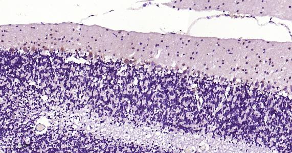 Paraformaldehyde-fixed, paraffin embedded Rat Cerebellum; Antigen retrieval by boiling in sodium citrate buffer (pH6.0) for 15 min; Antibody incubation with NGF Monoclonal Antibody, Unconjugated(bsm-52362R) at 1:200 overnight at 4°C, followed by conjugation to the bs-0295G-HRP and DAB (C-0010) staining.