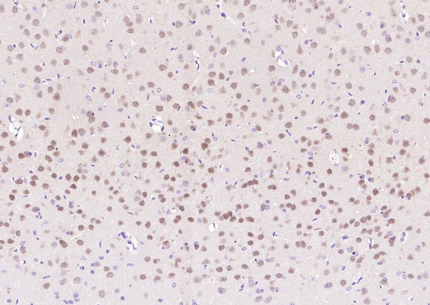Paraformaldehyde-fixed, paraffin embedded (mouse brain ); Antigen retrieval by boiling in sodium citrate buffer (pH6.0) for 15min; Block endogenous peroxidase by 3% hydrogen peroxide for 20 minutes; Blocking buffer (normal goat serum) at 37°C for 30min; Incubation with (NeuN) Monoclonal Antibody, Unconjugated (bsm-41402M) at 1:100 overnight at 4°C, followed by operating according to SP Kit(Mouse)(sp-0024) instructionsand DAB staining.