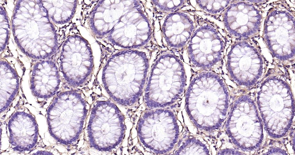 Paraformaldehyde-fixed, paraffin embedded Human Colon; Antigen retrieval by boiling in sodium citrate buffer (pH6.0) for 15 min; Antibody incubation with Lumican Monoclonal Antibody, Unconjugated(bsm-54450R) at 1:150 overnight at 4°C, followed by conjugation to the bs-0295G-HRP and DAB (C-0010) staining.