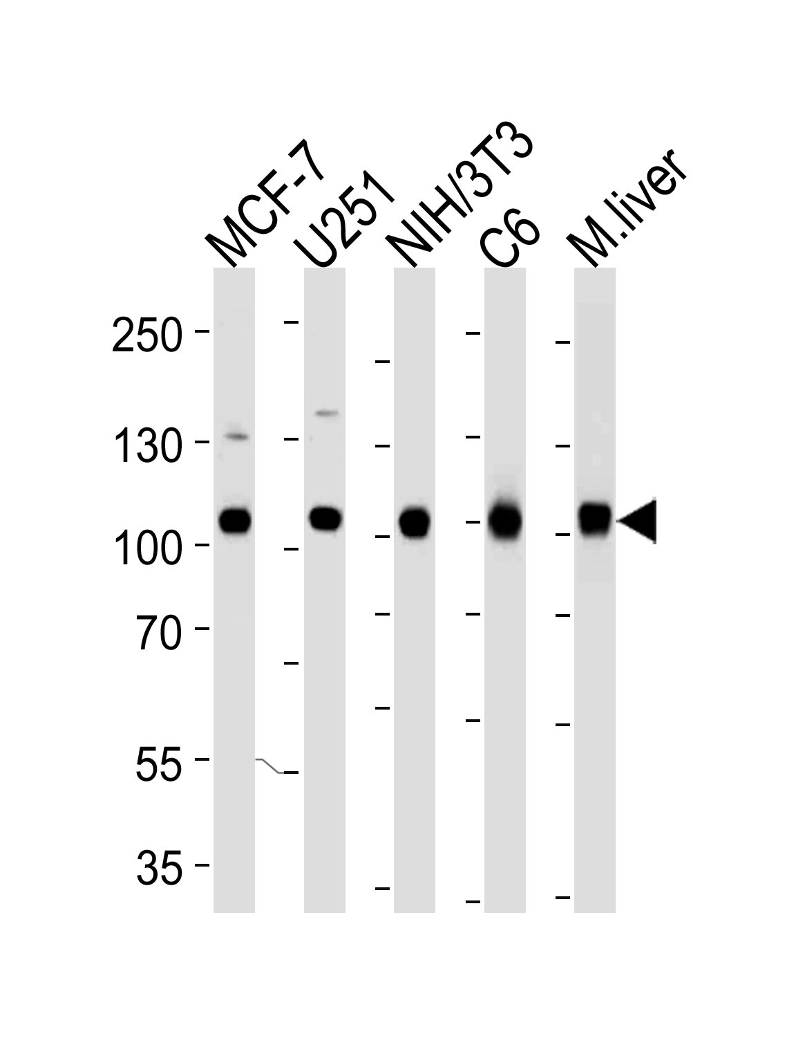 Lane 5: Mouse Liver tissue lysates