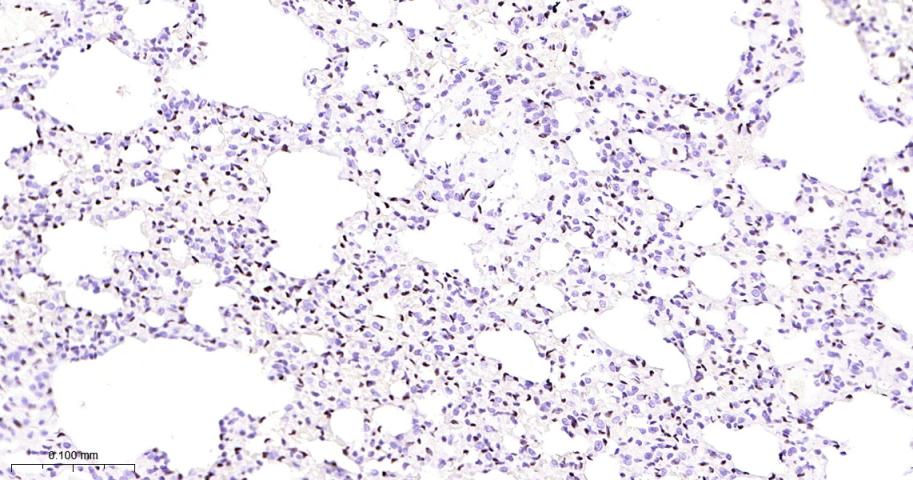 Paraformaldehyde-fixed, paraffin embedded Mouse Lung; Antigen retrieval by boiling in sodium citrate buffer (pH6.0) for 15 min; Antibody incubation with ERG Monoclonal Antibody, Unconjugated(bsm-52324R) at 1:200 overnight at 4°C, followed by conjugation to the bs-0295G-HRP and DAB (C-0010) staining.