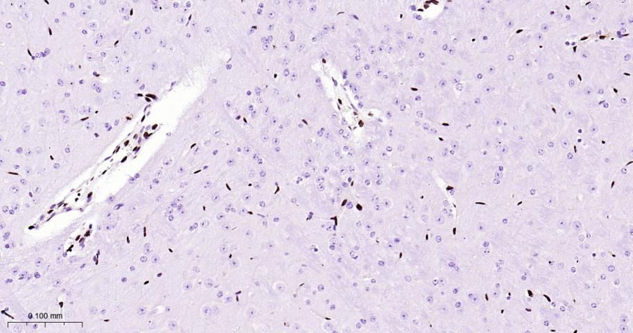 Paraformaldehyde-fixed, paraffin embedded Rat Cerebrum; Antigen retrieval by boiling in sodium citrate buffer (pH6.0) for 15 min; Antibody incubation with ERG Monoclonal Antibody, Unconjugated(bsm-52324R) at 1:200 overnight at 4°C, followed by conjugation to the bs-0295G-HRP and DAB (C-0010) staining.