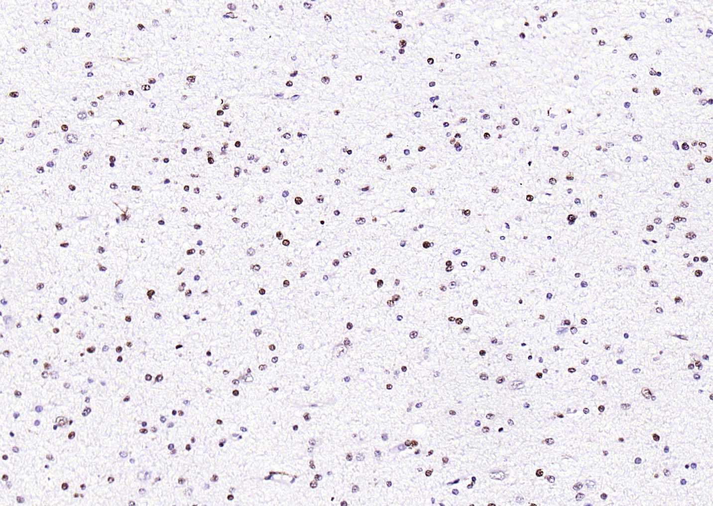 Paraformaldehyde-fixed, paraffin embedded (human brain); Antigen retrieval by boiling in sodium citrate buffer (pH6.0) for 15min; Block endogenous peroxidase by 3% hydrogen peroxide for 20 minutes; Blocking buffer (normal goat serum) at 37°C for 30min; Antibody incubation with (H2AFX) Monoclonal Antibody, Unconjugated (bsm-51222M) at 1:200 overnight at 4°C, followed by operating according to SP Kit(Mouse)(sp-0024) instructionsand DAB staining.