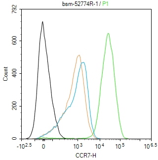 Primary Antibody (green line): Mouse Anti-CCR7 antibody (bsm-52774R)