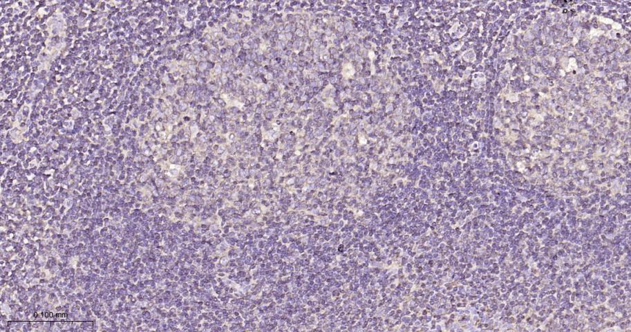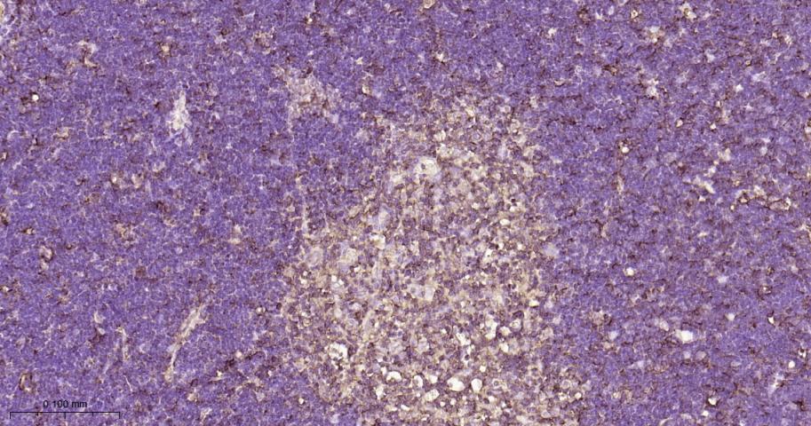 Paraformaldehyde-fixed, paraffin embedded Human Lymph; Antigen retrieval by boiling in sodium citrate buffer (pH6.0) for 15 min; Antibody incubation with CCR7 Monoclonal Antibody, Unconjugated(bsm-52774R) at 1:200 overnight at 4°C, followed by conjugation to the bs-0295G-HRP and DAB (C-0010) staining.