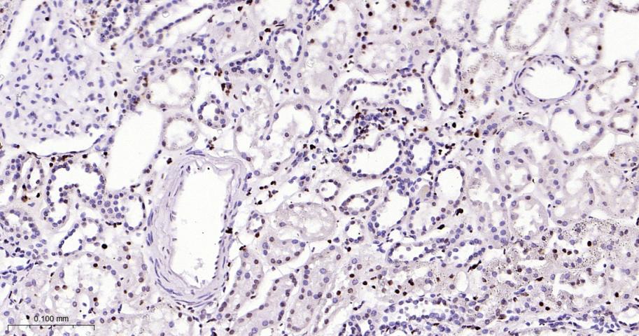 Paraformaldehyde-fixed, paraffin embedded Human Kidney; Antigen retrieval by boiling in sodium citrate buffer (pH6.0) for 15 min; The section was incubated with Histone H3 (Tri Methyl K9) Polyclonal Antibody, Unconjugated (bs-53114R) at 1:200 overnight at 4°C, followed by conjugation to the bs-0295G-HRP and DAB (C-0010) staining.