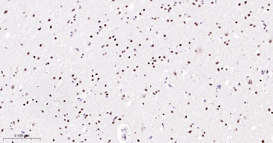 Paraformaldehyde-fixed, paraffin embedded Human Cerebrum; Antigen retrieval by boiling in sodium citrate buffer (pH6.0) for 15 min; The section was incubated with Histone H3 (Tri Methyl K9) Polyclonal Antibody, Unconjugated (bs-53114R) at 1:200 overnight at 4°C, followed by conjugation to the bs-0295G-HRP and DAB (C-0010) staining.