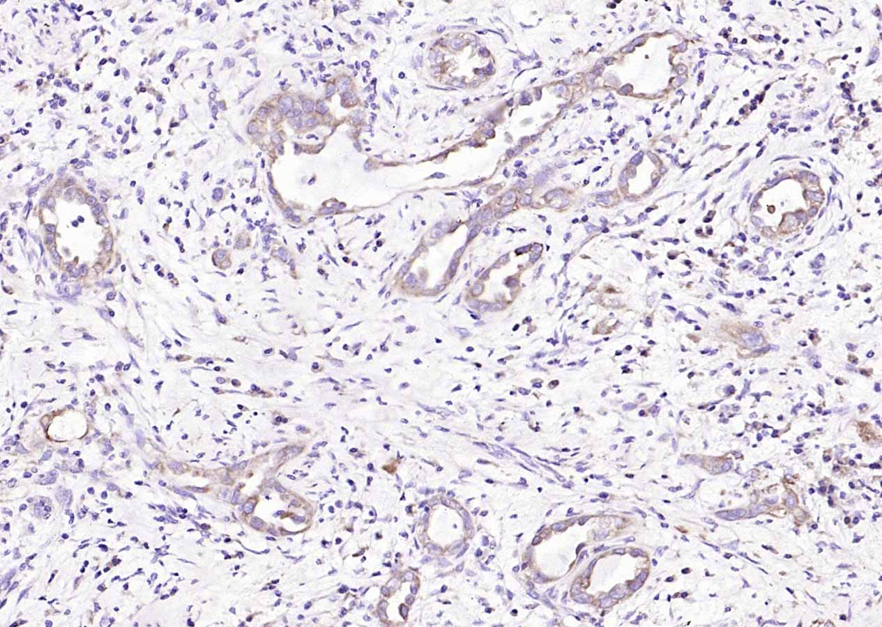 Paraformaldehyde-fixed, paraffin embedded (human cervical carcinoma); Antigen retrieval by boiling in sodium citrate buffer (pH6.0) for 15min; Block endogenous peroxidase by 3% hydrogen peroxide for 20 minutes; Blocking buffer (normal goat serum) at 37°C for 30min; Incubation with (SPARC ) Polyclonal Antibody, Unconjugated (bs-25112R) at 1:200 overnight at 4°C, followed by operating according to SP Kit(Rabbit) (sp-0023) instructionsand DAB staining.