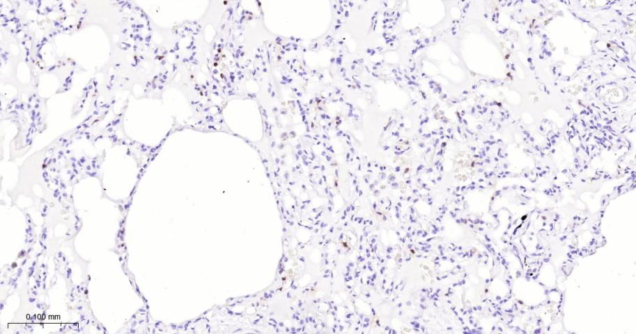 Paraformaldehyde-fixed, paraffin embedded Human Lung; Antigen retrieval by boiling in sodium citrate buffer (pH6.0) for 15 min; The section was incubated with Azurocidin/HBP Monoclonal Antibody, Unconjugated (bsm-41703M) at 1:200 overnight at 4°C, followed by conjugation to the bs-40296G-HRP and DAB (C-0010) staining.