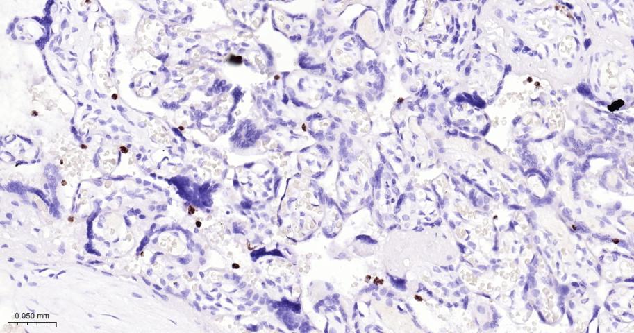 Paraformaldehyde-fixed, paraffin embedded Human Acute choriitis; Antigen retrieval by boiling in sodium citrate buffer (pH6.0) for 15 min; The section was incubated with Azurocidin/HBP Monoclonal Antibody, Unconjugated (bsm-41703M) at 1:200 overnight at 4°C, followed by conjugation to the bs-40296G-HRP and DAB (C-0010) staining.