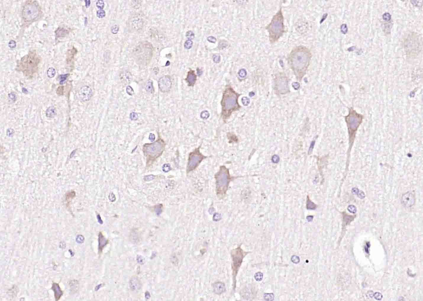 Paraformaldehyde-fixed, paraffin embedded (rat brain); Antigen retrieval by boiling in sodium citrate buffer (pH6.0) for 15min; Block endogenous peroxidase by 3% hydrogen peroxide for 20 minutes; Blocking buffer (normal goat serum) at 37°C for 30min; Incubation with (RHOJ) Polyclonal Antibody, Unconjugated (bs-25181R) at 1:200 overnight at 4°C, followed by operating according to SP Kit(Rabbit) (sp-0023) instructionsand DAB staining.