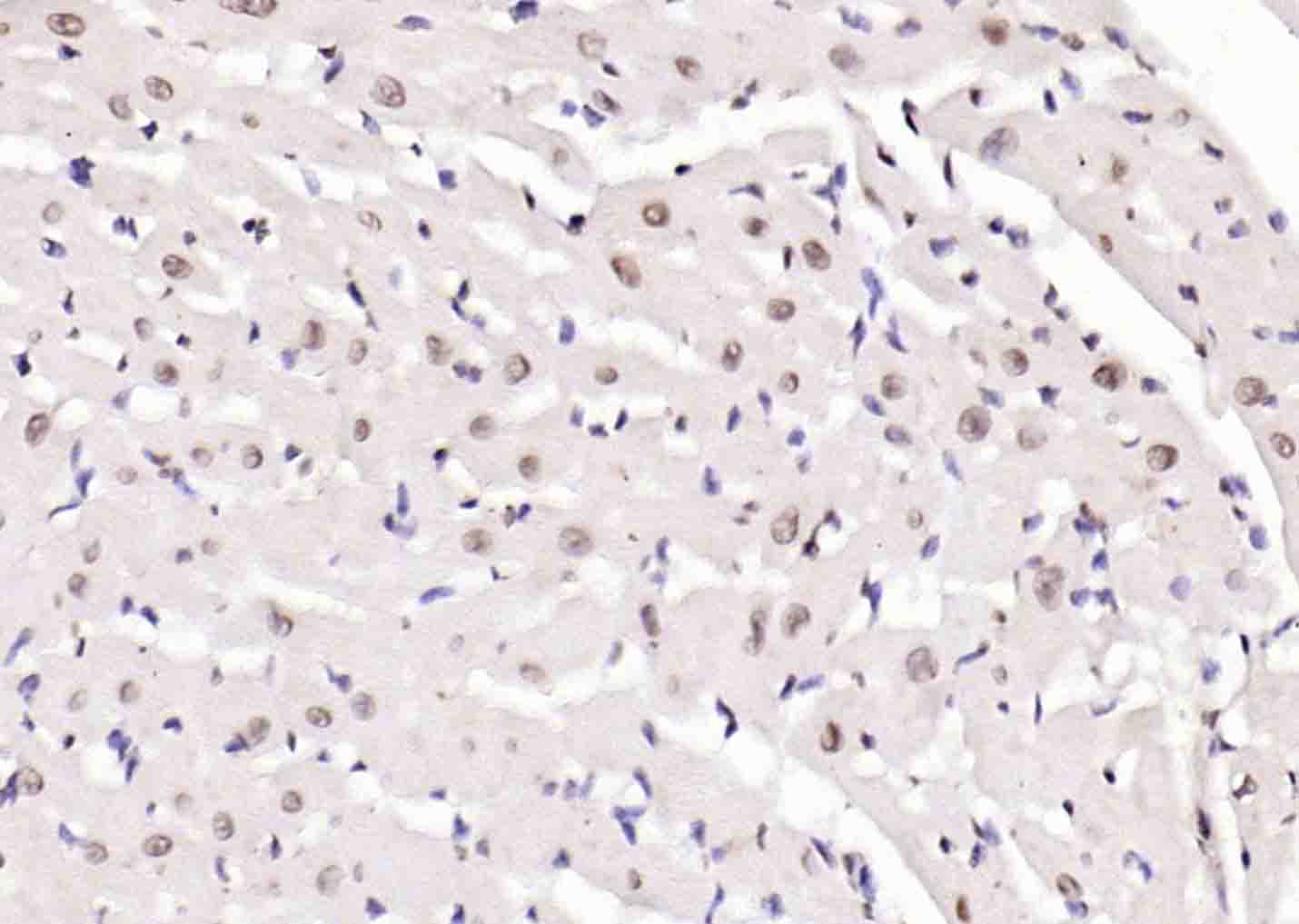 Paraformaldehyde-fixed, paraffin embedded (mouse heart); Antigen retrieval by boiling in sodium citrate buffer (pH6.0) for 15min; Block endogenous peroxidase by 3% hydrogen peroxide for 20 minutes; Blocking buffer (normal goat serum) at 37°C for 30min; Incubation with (PTGES2) Polyclonal Antibody, Unconjugated (bs-25192R) at 1:200 overnight at 4°C, followed by operating according to SP Kit(Rabbit) (sp-0023) instructionsand DAB staining.