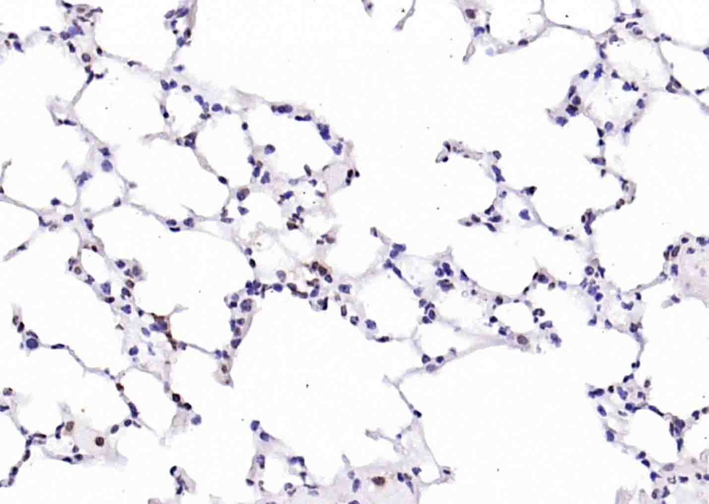 Paraformaldehyde-fixed, paraffin embedded (mouse lung); Antigen retrieval by boiling in sodium citrate buffer (pH6.0) for 15min; Block endogenous peroxidase by 3% hydrogen peroxide for 20 minutes; Blocking buffer (normal goat serum) at 37°C for 30min; Incubation with (PTGES2) Polyclonal Antibody, Unconjugated (bs-25192R) at 1:200 overnight at 4°C, followed by operating according to SP Kit(Rabbit) (sp-0023) instructionsand DAB staining.