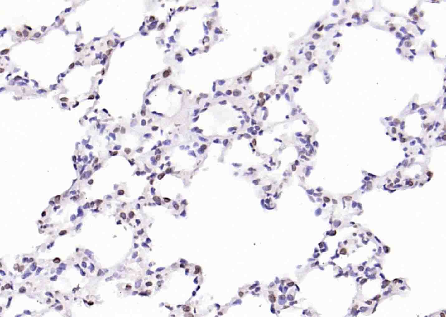Paraformaldehyde-fixed, paraffin embedded (rat lung); Antigen retrieval by boiling in sodium citrate buffer (pH6.0) for 15min; Block endogenous peroxidase by 3% hydrogen peroxide for 20 minutes; Blocking buffer (normal goat serum) at 37°C for 30min; Incubation with (PTGES2) Polyclonal Antibody, Unconjugated (bs-25192R) at 1:200 overnight at 4°C, followed by operating according to SP Kit(Rabbit) (sp-0023) instructionsand DAB staining.