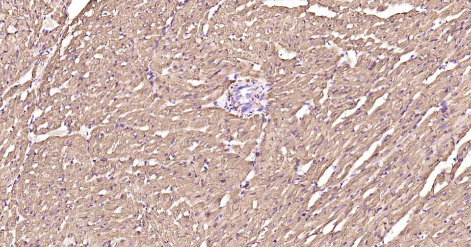 Paraformaldehyde-fixed, paraffin embedded Rat Heart; Antigen retrieval by boiling in sodium citrate buffer (pH6.0) for 15 min; Antibody incubation with Desmin Monoclonal Antibody, Unconjugated(bsm-60266R) at 1:200 overnight at 4°C, followed by conjugation to the bs-0295G-HRP and DAB (C-0010) staining.