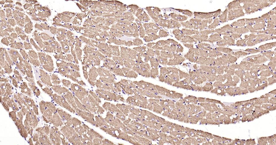 Paraformaldehyde-fixed, paraffin embedded Mouse Heart; Antigen retrieval by boiling in sodium citrate buffer (pH6.0) for 15 min; Antibody incubation with Desmin Monoclonal Antibody, Unconjugated(bsm-60266R) at 1:200 overnight at 4°C, followed by conjugation to the bs-0295G-HRP and DAB (C-0010) staining.