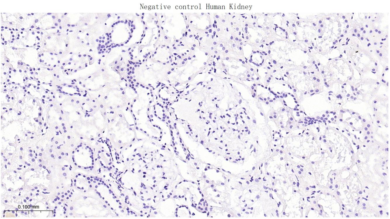 (Negative control) Paraformaldehyde-fixed, paraffin embedded Human Kidney; Antigen retrieval by boiling in sodium citrate buffer (pH6.0) for 15 min; Antibody incubation with PAX5 Monoclonal Antibody, Unconjugated(bsm-60221R) at 1:100 overnight at 4°C, followed by conjugation to the bs-0295G-HRP and DAB (C-0010) staining.