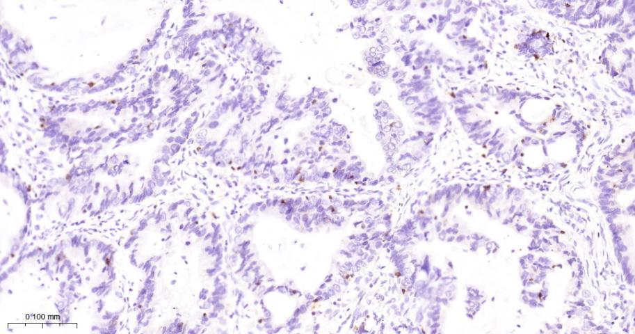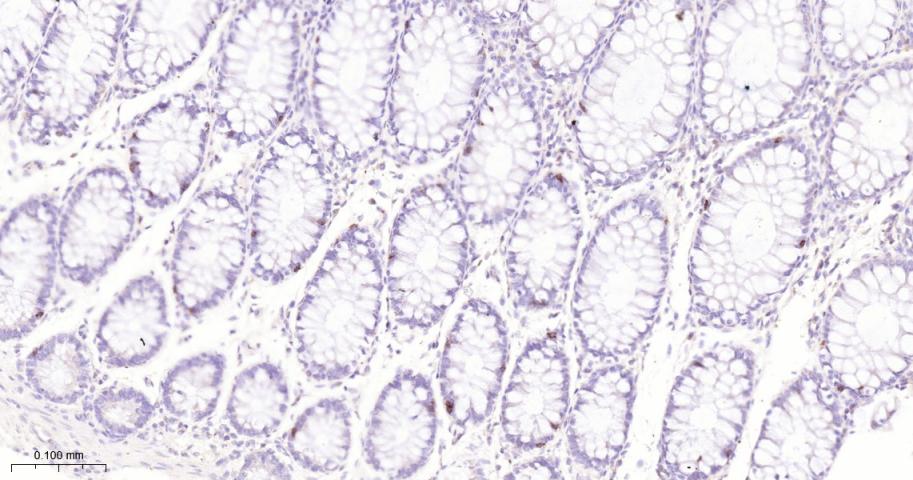 Paraformaldehyde-fixed, paraffin embedded Human Colon; Antigen retrieval by boiling in sodium citrate buffer (pH6.0) for 15 min; The section was incubated with ITGAE/CD103 Monoclonal Antibody, Unconjugated (bsm-60226R) at 1:200 overnight at 4°C, followed by conjugation to the bs-0295G-HRP and DAB (C-0010) staining.