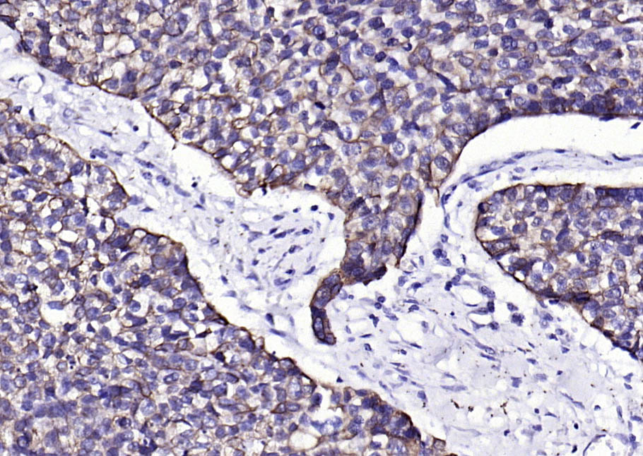 Paraformaldehyde-fixed, paraffin embedded (human breast); Antigen retrieval by boiling in sodium citrate buffer (pH6.0) for 15min; Block endogenous peroxidase by 3% hydrogen peroxide for 20 minutes; Blocking buffer (normal goat serum) at 37°C for 30min; Antibody incubation with (Keratin 6) Monoclonal Antibody, Unconjugated (bsm-60235R) at 1:200 overnight at 4°C, followed by operating according to SP Kit(Rabbit) (sp-0023) instructionsand DAB staining.