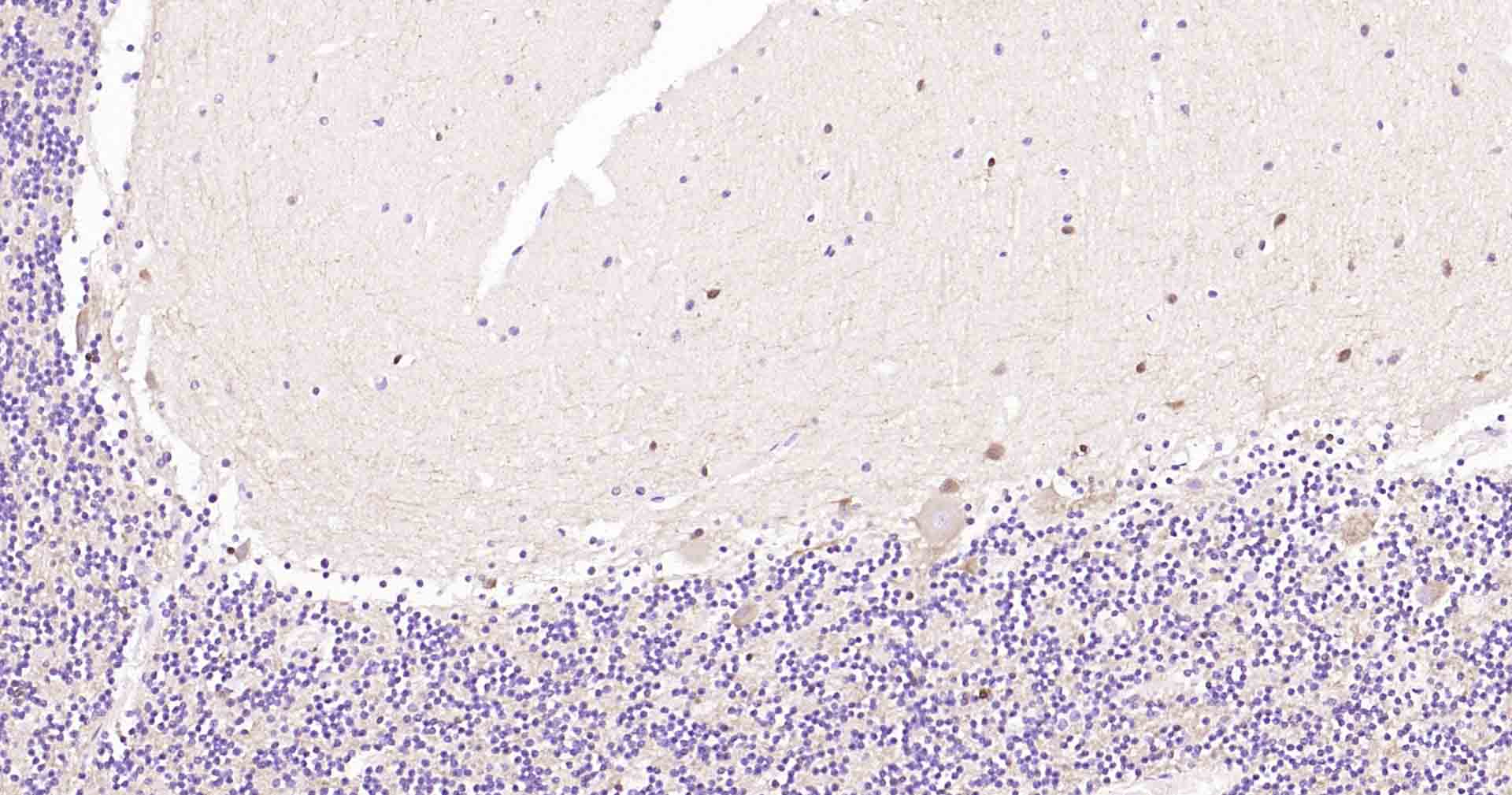 Paraformaldehyde-fixed, paraffin embedded Human Cerebellum; Antigen retrieval by boiling in sodium citrate buffer (pH6.0) for 15 min; Antibody incubation with Human Tau-4 Monoclonal Antibody, Unconjugated(bsm-41722M) at 1:200 overnight at 4°C, followed by conjugation to the SP Kit (Mouse, sp-0024) and DAB (C-0010) staining.