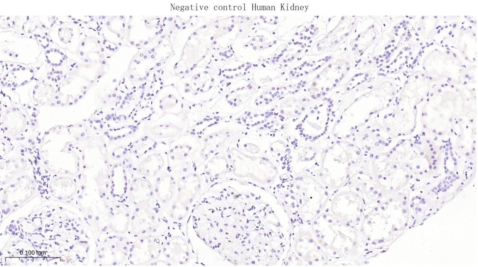 (Negative control) Paraformaldehyde-fixed, paraffin embedded Human Kidney; Antigen retrieval by boiling in sodium citrate buffer (pH6.0) for 15 min; The section was incubated with Tau-4 Monoclonal Antibody, Unconjugated (ascites of bsm-41722M) at 1:1500 overnight at 4°C, followed by conjugation to the bs-40296G-HRP and DAB (C-0010) staining.