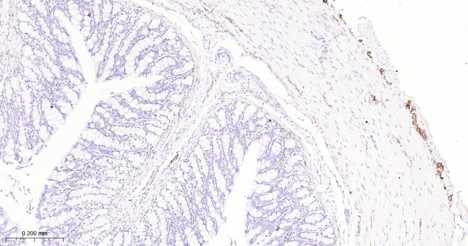 Paraformaldehyde-fixed, paraffin embedded Rat Colon; Antigen retrieval by boiling in sodium citrate buffer (pH6.0) for 15 min; The section was incubated with Tau-4 Monoclonal Antibody, Unconjugated (ascites of bsm-41722M) at 1:1500 overnight at 4°C, followed by conjugation to the bs-40296G-HRP and DAB (C-0010) staining.