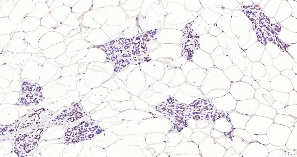 Paraformaldehyde-fixed, paraffin embedded Rat Breast; Antigen retrieval by boiling in sodium citrate buffer (pH6.0) for 15 min; Antibody incubation with phospho-ERK1 (Thr202)+ ERK2 (Thr185) Monoclonal Antibody, Unconjugated(bsm-54491R) at 1:200 overnight at 4°C, followed by conjugation to the SP Kit(Rabbit, SP-0023) and DAB (C-0010) staining.