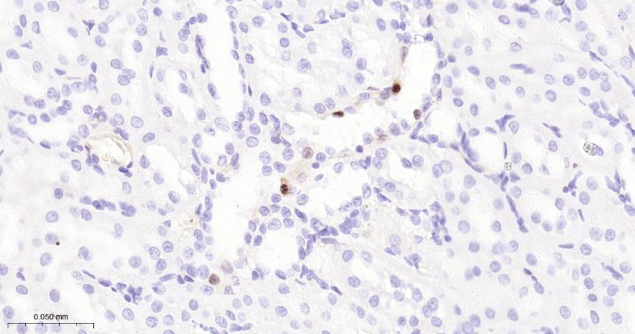 Paraformaldehyde-fixed, paraffin embedded Rat Kidney; Antigen retrieval by boiling in sodium citrate buffer (pH6.0) for 15 min; The section was incubated with phospho-ERK1 (Thr202)+ ERK2 (Thr185)?Monoclonal Antibody, Unconjugated (bsm-54491R) at 1:200 overnight at 4°C, followed by conjugation to the bs-0295G-HRP and DAB (C-0010) staining.