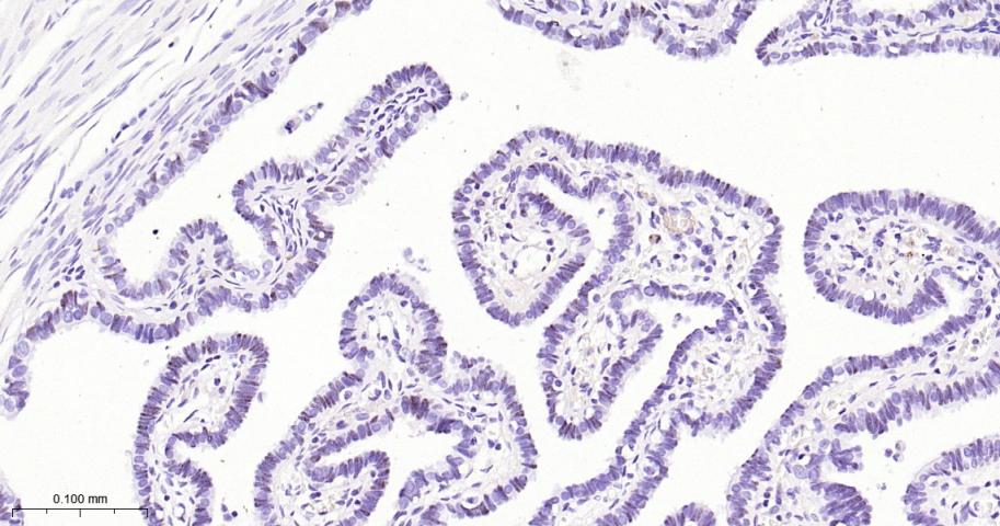 Paraformaldehyde-fixed, paraffin embedded Human fallopian tube; Antigen retrieval by boiling in sodium citrate buffer (pH6.0) for 15 min; Antibody incubation with PAX8 Monoclonal Antibody, Unconjugated(bsm-52737R) at 1:200 overnight at 4°C, followed by conjugation to the bs-0295G-HRP and DAB (C-0010) staining.