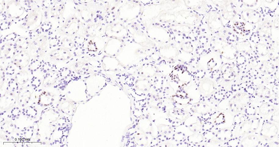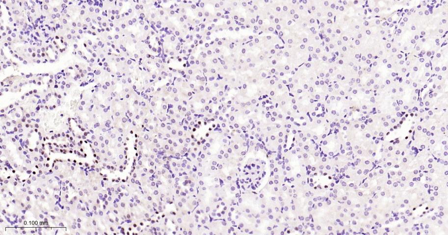 Paraformaldehyde-fixed, paraffin embedded Rat kidney; Antigen retrieval by boiling in sodium citrate buffer (pH6.0) for 15 min; Antibody incubation with PAX8 Monoclonal Antibody, Unconjugated(bsm-52737R) at 1:200 overnight at 4°C, followed by conjugation to the bs-0295G-HRP and DAB (C-0010) staining.