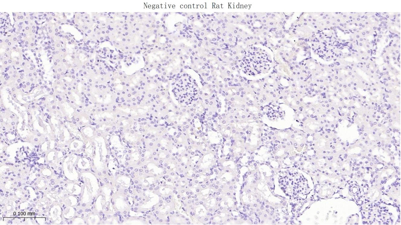 (Negative control)Paraformaldehyde-fixed, paraffin embedded Rat Kidney; Antigen retrieval by boiling in sodium citrate buffer (pH6.0) for 15 min; Antibody incubation with CDH17/LI-cadherin Monoclonal Antibody, Unconjugated(bsm-60434R) at 1:200 overnight at 4°C, followed by conjugation to the bs-0295G-HRP and DAB (C-0010) staining.