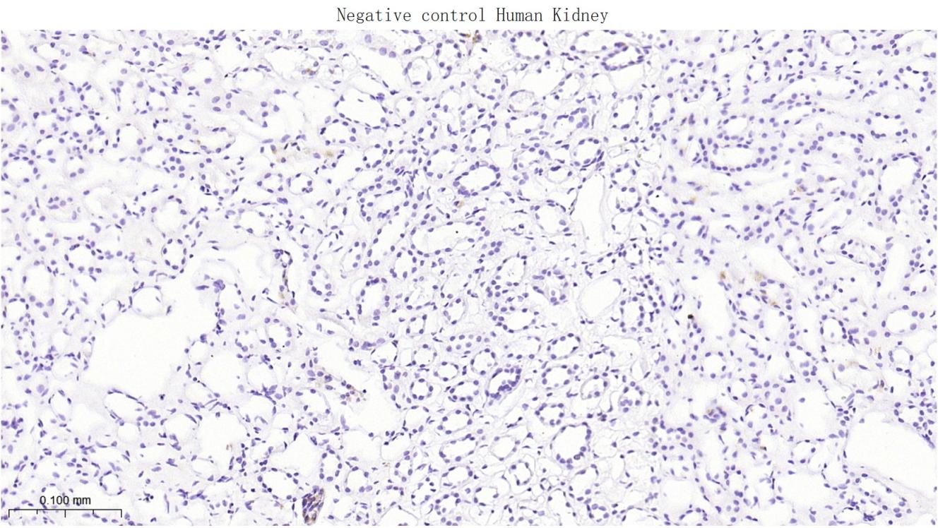 (Negative control)Paraformaldehyde-fixed, paraffin embedded Human Kidney; Antigen retrieval by boiling in sodium citrate buffer (pH6.0) for 15 min; Antibody incubation with CDH17/LI-cadherin Monoclonal Antibody, Unconjugated(bsm-60434R) at 1:200 overnight at 4°C, followed by conjugation to the bs-0295G-HRP and DAB (C-0010) staining.