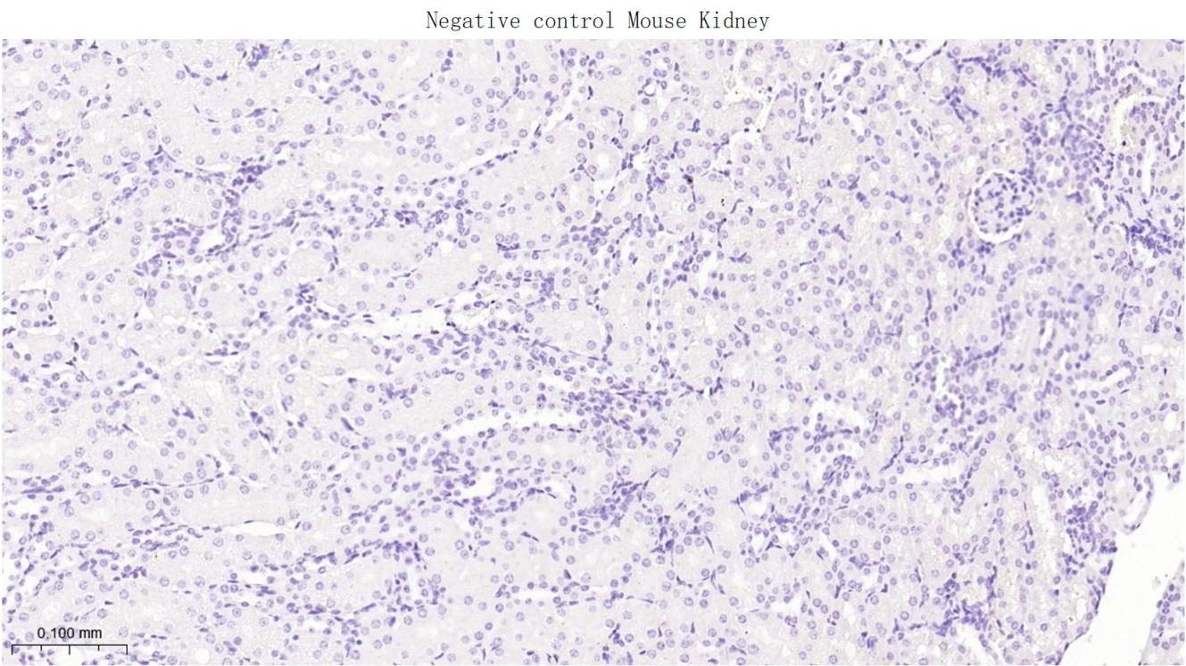 (Negative control)Paraformaldehyde-fixed, paraffin embedded Mouse Kidney; Antigen retrieval by boiling in sodium citrate buffer (pH6.0) for 15 min; Antibody incubation with CDH17/LI-cadherin Monoclonal Antibody, Unconjugated(bsm-60434R) at 1:200 overnight at 4°C, followed by conjugation to the bs-0295G-HRP and DAB (C-0010) staining.