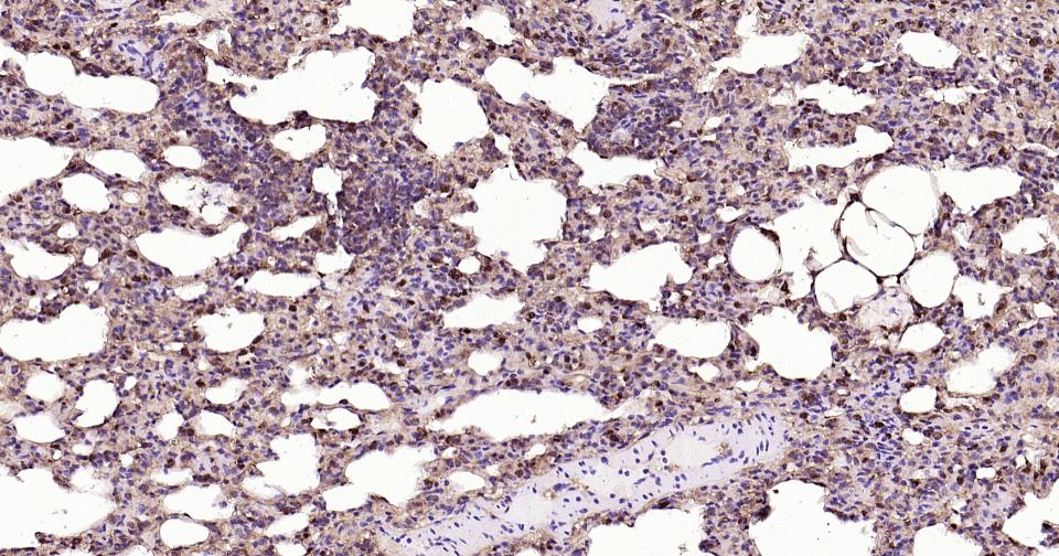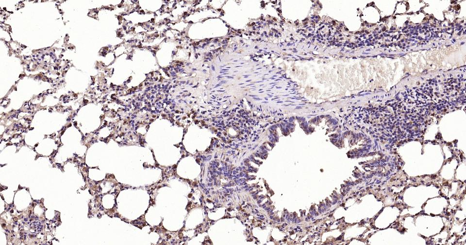 Paraformaldehyde-fixed, paraffin embedded Mouse Lung; Antigen retrieval by boiling in sodium citrate buffer (pH6.0) for 15 min; Antibody incubation with ACLY Monoclonal Antibody, Unconjugated(bsm-52458R) at 1:200 overnight at 4°C, followed by conjugation to the SP Kit(Rabbit, SP-0023) and DAB (C-0010) staining.