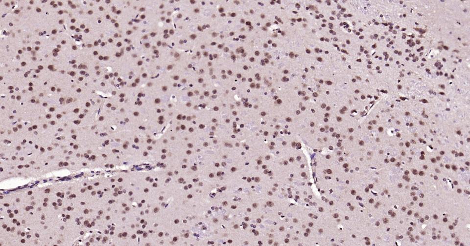 Paraformaldehyde-fixed, paraffin embedded Rat Cerebrum; Antigen retrieval by boiling in sodium citrate buffer (pH6.0) for 15 min; Antibody incubation with HES5 Monoclonal Antibody, Unconjugated(bsm-60648R) at 1:200 overnight at 4°C, followed by conjugation to the bs-0295G-HRP and DAB (C-0010) staining.