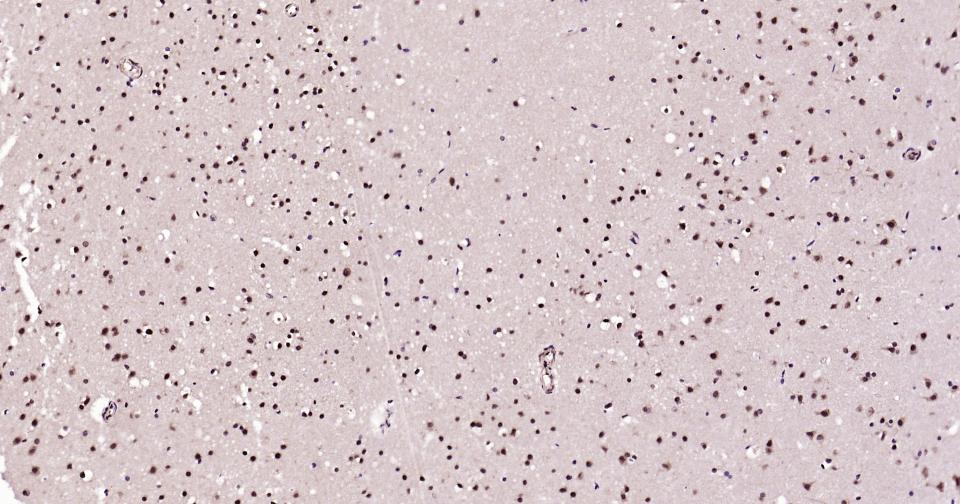 Paraformaldehyde-fixed, paraffin embedded Human Cerebrum; Antigen retrieval by boiling in sodium citrate buffer (pH6.0) for 15 min; Antibody incubation with HES5 Monoclonal Antibody, Unconjugated(bsm-60648R) at 1:200 overnight at 4°C, followed by conjugation to the bs-0295G-HRP and DAB (C-0010) staining.