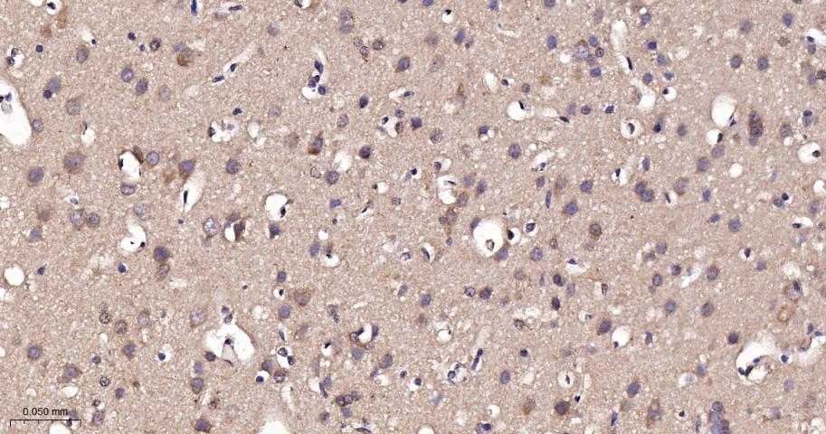 Paraformaldehyde-fixed, paraffin embedded Rat Cerebrum; Antigen retrieval by boiling in sodium citrate buffer (pH6.0) for 15 min; The section was incubated with PDHA1 Monoclonal Antibody, Unconjugated (bsm-60685R) at 1:200 overnight at 4°C, followed by conjugation to the bs-0295G-HRP and DAB (C-0010) staining.