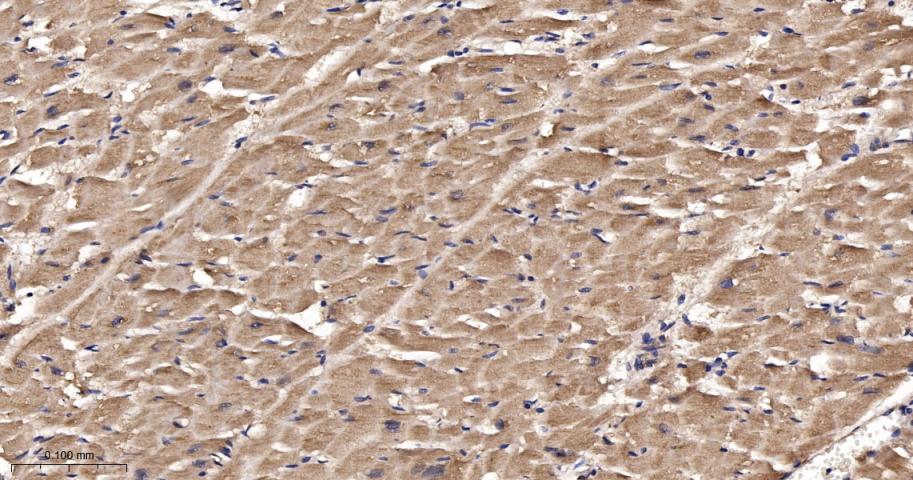 Paraformaldehyde-fixed, paraffin embedded Rat Heart; Antigen retrieval by boiling in sodium citrate buffer (pH6.0) for 15 min; The section was incubated with PDHA1 Monoclonal Antibody, Unconjugated (bsm-60685R) at 1:200 overnight at 4°C, followed by conjugation to the bs-0295G-HRP and DAB (C-0010) staining.