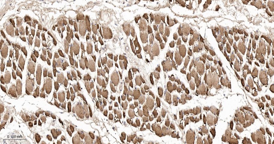 Paraformaldehyde-fixed, paraffin embedded Human Skeletal muscle; Antigen retrieval by boiling in sodium citrate buffer (pH6.0) for 15 min; The section was incubated with PDHA1 Monoclonal Antibody, Unconjugated (bsm-60685R) at 1:200 overnight at 4°C, followed by conjugation to the bs-0295G-HRP and DAB (C-0010) staining.