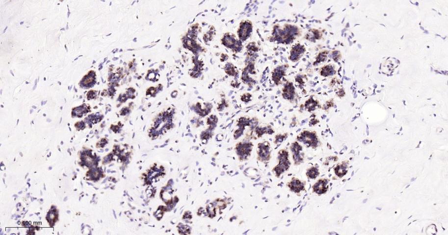 Paraformaldehyde-fixed, paraffin embedded Human Breast; Antigen retrieval by boiling in sodium citrate buffer (pH6.0) for 15 min; The section was incubated with RBX1 Monoclonal Antibody, Unconjugated (bsm-60704R) at 1:200 overnight at 4°C, followed by conjugation to the bs-0295G-HRP and DAB (C-0010) staining.