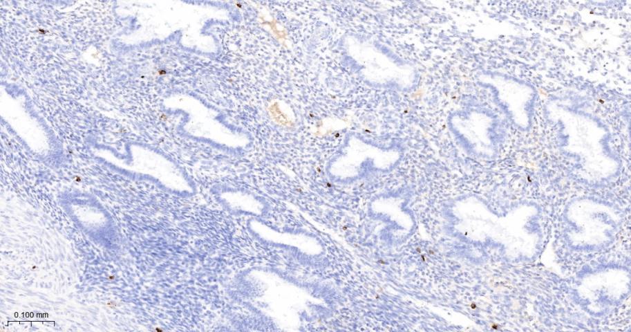 Paraformaldehyde-fixed, paraffin embedded Human Uterus; Antigen retrieval by boiling in sodium citrate buffer (pH6.0) for 15 min; The section was incubated with CMA1 Monoclonal Antibody, Unconjugated (bsm-54265R) at 1:200 overnight at 4°C, followed by conjugation to the bs-0295G-HRP and DAB (C-0010) staining.