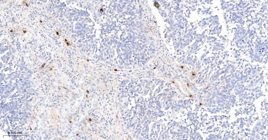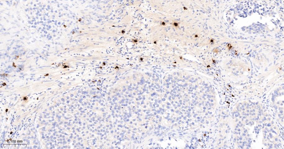 Paraformaldehyde-fixed, paraffin embedded Human Tonsil; Antigen retrieval by boiling in sodium citrate buffer (pH6.0) for 15 min; The section was incubated with CMA1 Monoclonal Antibody, Unconjugated (bsm-54265R) at 1:200 overnight at 4°C, followed by conjugation to the bs-0295G-HRP and DAB (C-0010) staining.