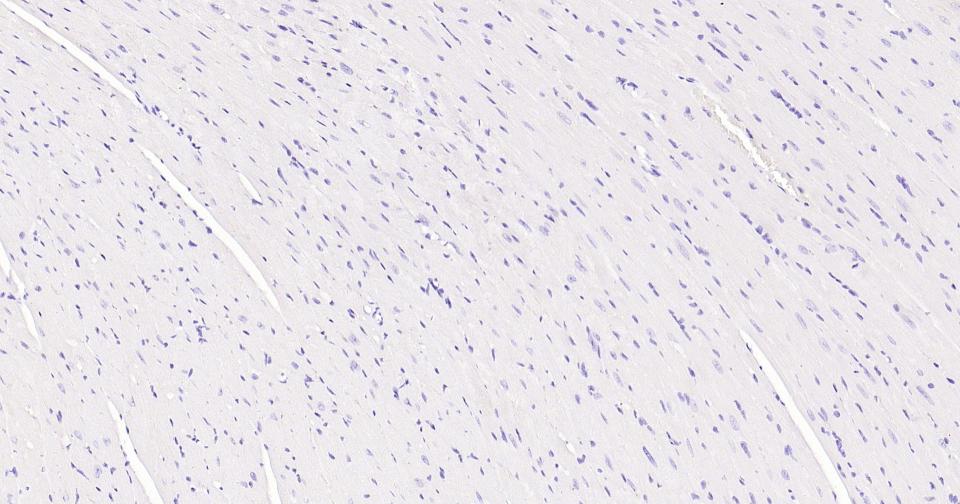 (Negative control) Paraformaldehyde-fixed, paraffin embedded Human Heart; Antigen retrieval by boiling in sodium citrate buffer (pH6.0) for 15 min; Antibody incubation with Ki67 Monoclonal Antibody, Unconjugated(bsm-60738R) at 1:500 overnight at 4°C, followed by conjugation to the SP Kit (Rabbit, SP-0023)and DAB (C-0010) staining.