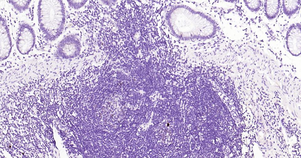 Paraformaldehyde-fixed, paraffin embedded Human Colon; Antigen retrieval by boiling in sodium citrate buffer (pH6.0) for 15 min; Antibody incubation with Ki67 Monoclonal Antibody, Unconjugated(bsm-60738R) at 1:500 overnight at 4°C, followed by conjugation to the SP Kit (Rabbit, SP-0023)and DAB (C-0010) staining.