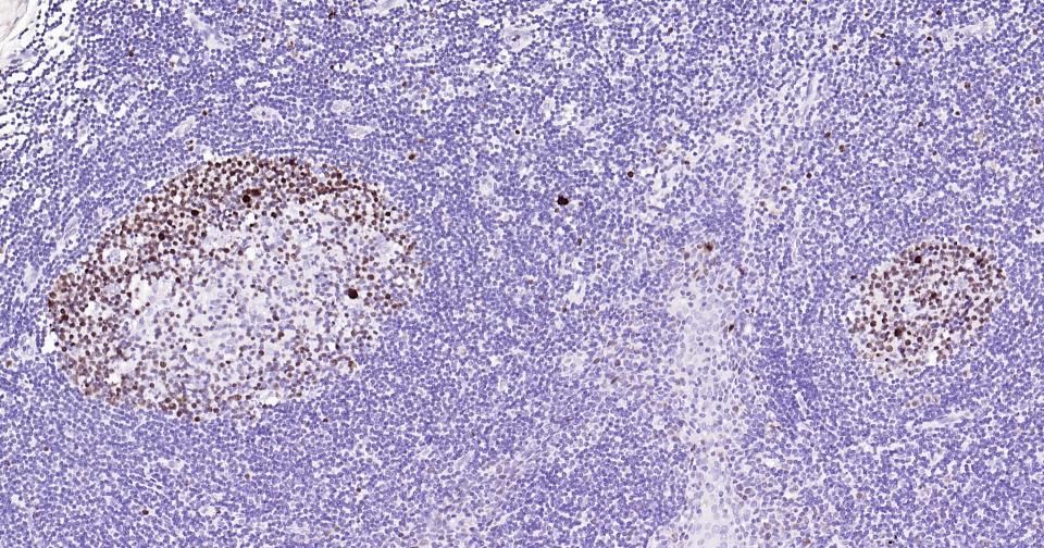 Paraformaldehyde-fixed, paraffin embedded Rat Spleen; Antigen retrieval by boiling in sodium citrate buffer (pH6.0) for 15 min; Antibody incubation with Ki67 Monoclonal Antibody, Unconjugated(bsm-60738R) at 1:500 overnight at 4°C, followed by conjugation to the SP Kit (Rabbit, SP-0023)and DAB (C-0010) staining.