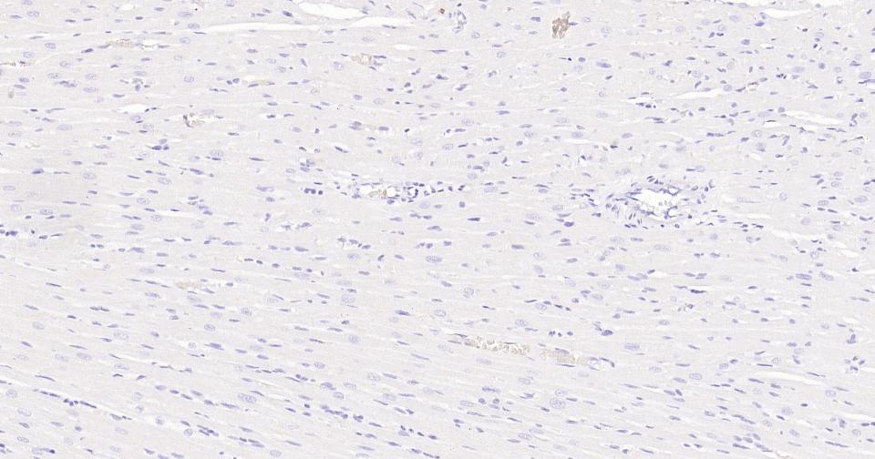 (Negative control) Paraformaldehyde-fixed, paraffin embedded Rat Heart; Antigen retrieval by boiling in sodium citrate buffer (pH6.0) for 15 min; Antibody incubation with Ki67 Monoclonal Antibody, Unconjugated(bsm-60738R) at 1:500 overnight at 4°C, followed by conjugation to the SP Kit (Rabbit, SP-0023)and DAB (C-0010) staining.