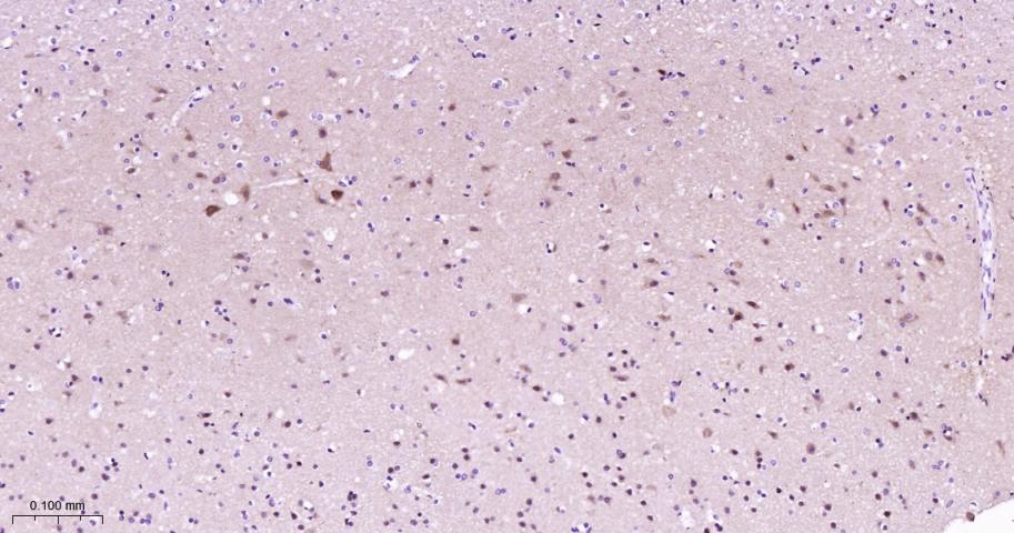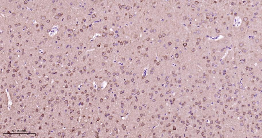 Paraformaldehyde-fixed, paraffin embedded Rat Cerebrum; Antigen retrieval by boiling in sodium citrate buffer (pH6.0) for 15 min; Antibody incubation with MEK1 Monoclonal Antibody, Unconjugated(bsm-60744R) at 1:200 overnight at 4°C, followed by conjugation to the bs-0295G-HRP and DAB (C-0010) staining.