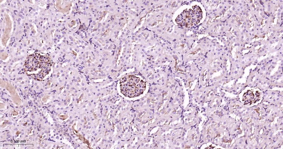 Paraformaldehyde-fixed, paraffin embedded Rat Kidney; Antigen retrieval by boiling in sodium citrate buffer (pH6.0) for 15 min; Antibody incubation with MEK1 Monoclonal Antibody, Unconjugated(bsm-60744R) at 1:200 overnight at 4°C, followed by conjugation to the bs-0295G-HRP and DAB (C-0010) staining.