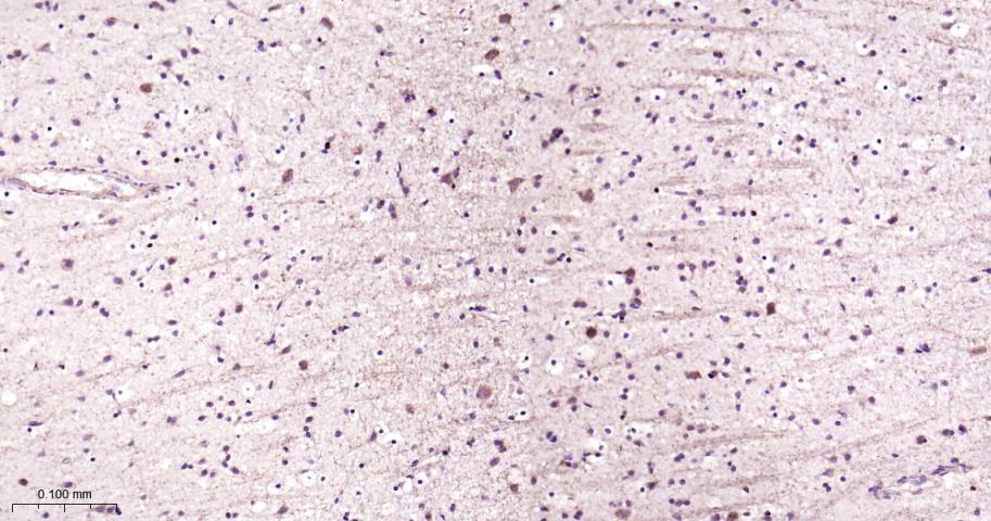 Paraformaldehyde-fixed, paraffin embedded Human Cerebrum; Antigen retrieval by boiling in sodium citrate buffer (pH6.0) for 15 min; Antibody incubation with GRIN2A Monoclonal Antibody, Unconjugated(bsm-54048R) at 1:200 overnight at 4°C, followed by conjugation to the bs-0295G-HRP and DAB (C-0010) staining.