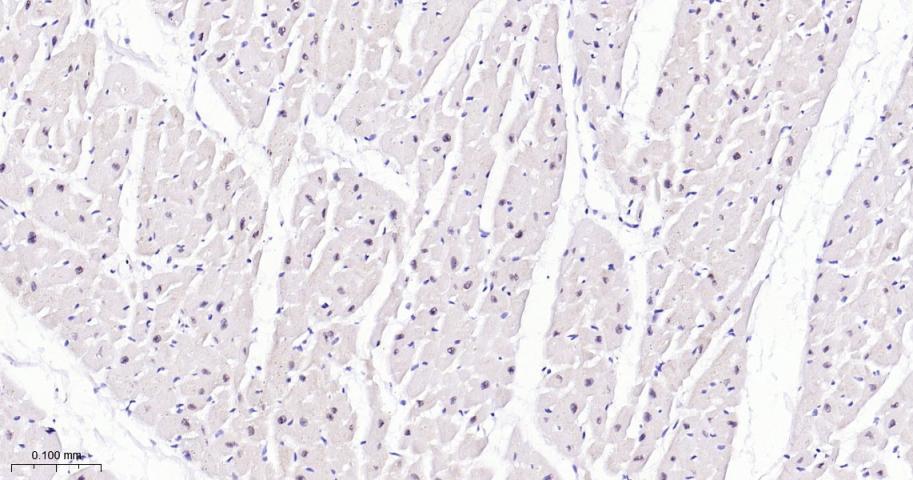 Paraformaldehyde-fixed, paraffin embedded Human Heart; Antigen retrieval by boiling in sodium citrate buffer (pH6.0) for 15 min; The section was incubated with PIN1 Monoclonal Antibody, Unconjugated (bsm-51230M) at 1:200 overnight at 4°C, followed by conjugation to the bs-40296G-HRP and DAB (C-0010) staining.